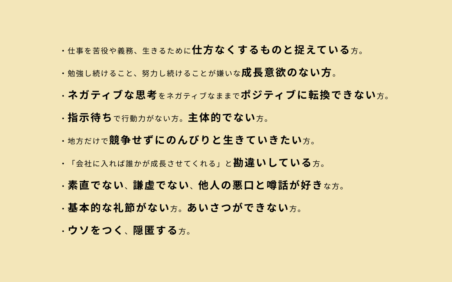 組織や世の中に対して良いと思うことを常に考えよう。